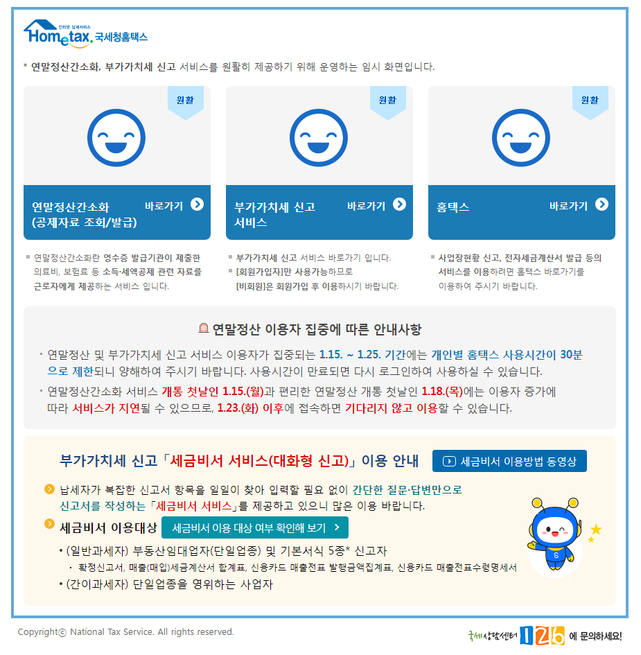 이상으로 국세청 홈택스 이용에 대해 알아보았는데요. 세금 신고 및 납부 같은 세무 업무를 세무서에 가지 않아도 간편하게 처리할 수 있기에 유용한 것 같습니다. 특히 연말정산 기간에는 간소화 서비스도 지원하기 때문에 잘 활용해보시기 바랍니다.