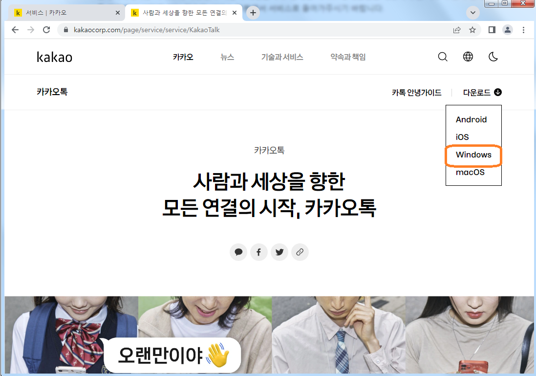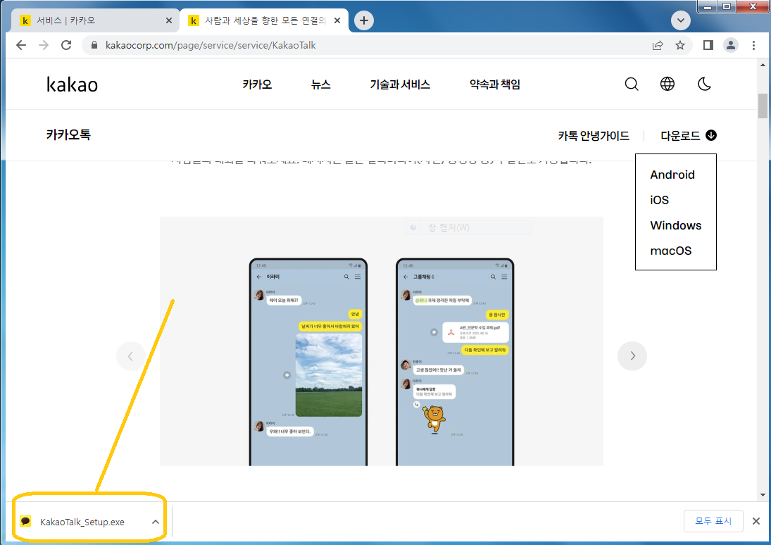 2. 카톡 PC버전 다운로드 받기
