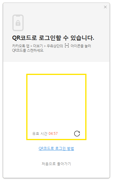 로그인은 카카오계정(이메일 & 전화번호), QR코드를 통하여 진행을 하면됩니다. 여기에 자동로그인을 체크한다면 다음부터는 수동으로 넣을 필요가 없습니다.